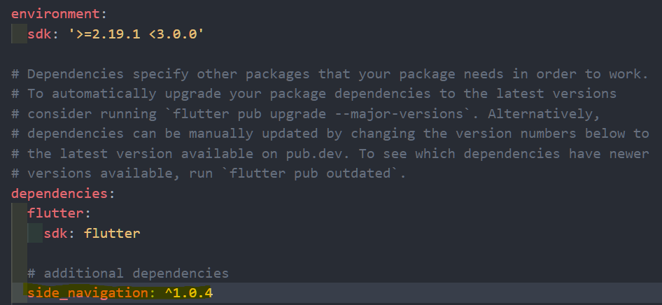 pubspec.yaml 파일에 다음과 같이 추가하면 알아서 의존성이 설치된다.