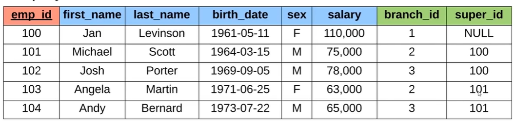 - A unique key identifies each row