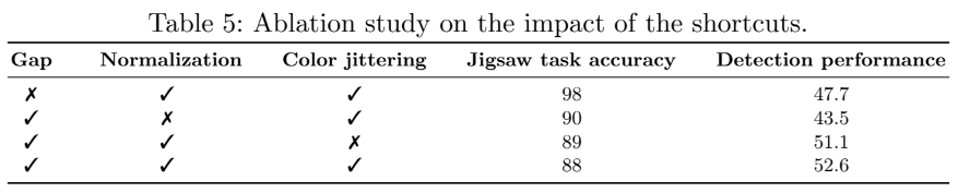 이러한 shortcut들을 제거하기 위해 다양한 방법들을 사용하는데 ablation study에서 다룬다.
