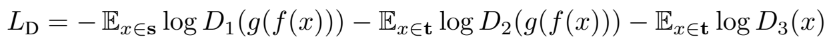 Discriminator는 target domain인지 아닌지 판단하는 역할 이었는데, 이를 세 번 수행하여,
