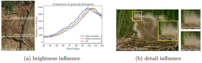 왼쪽 그래프를 보면 빨간색이 gt, 파란색이 after activation, 초록색이 before activation을 사용한 것입니다.