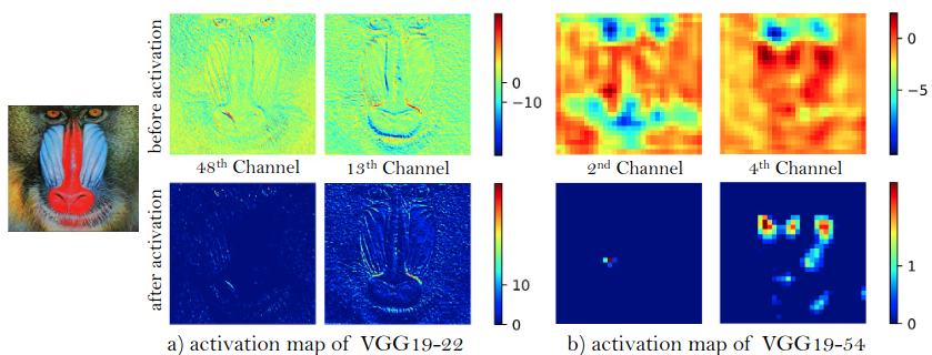 VGG19-54 layer(마지막 maxpooling 직전의 layer)의 활성화된 뉴런의 비율은 11.17% 밖에 되지 않습니다.