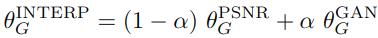 PSNR-oriented 방식으로 학습한 초기 가중치와 최종 가중치를 interpolation 해서 사용하는 기법입니다.