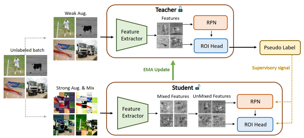바로 논문에서 제안하는 MUM을 설명하기 보다는 Semi-Supervised Object Detection(이하 SSOD)이 어떤 메커니즘으로 동작하는지 짚고 넘어 갑시다.