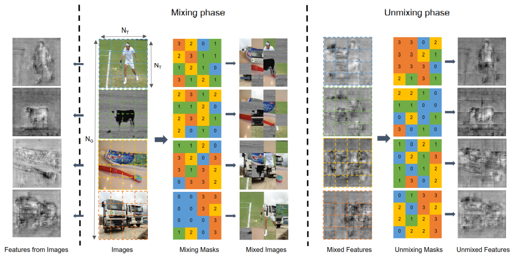 MUM은 제목에 써있듯 Image를 섞고 Feature를 다시 원래대로 복원하는 방법입니다.