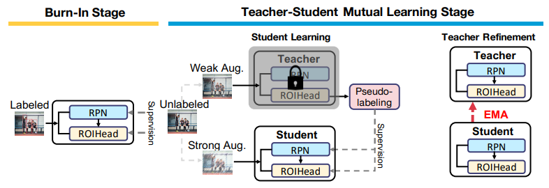이 논문에서도 baseline으로 삼고 있는 [2102.09480] Unbiased Teacher for Semi-Supervised Object Detection (arxiv.org) 라는 논문의 그림입니다.